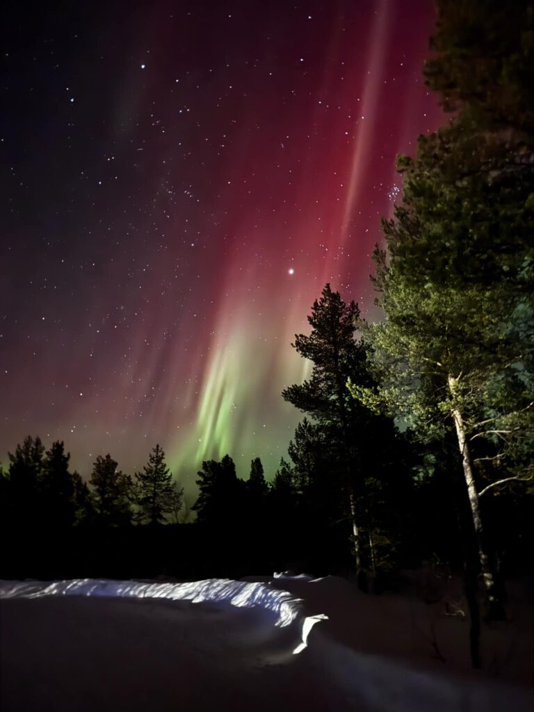 Jednak prawdziwe piękno kryje się dalej, na północ w krainie Saamów. Inari i Muotkan Ruoktu, dokąd udało nam się dotrzeć to bramy do prawdziwej arktycznej pustki. To stamtąd wyruszaliśmy na piesze wędrówki w poszukiwaniu zorzy. Stanie w kompletnym mroku, z głową zadartą do góry, gdy nad tobą tańczy wielobarwna i niesamowicie intensywna zorza to doświadczenie, które zostaje w nas na zawsze.