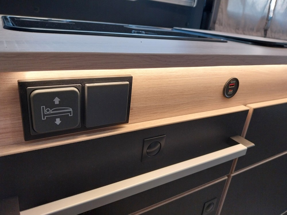 Dla zapewnienia komfortu w cieplejszych miesiącach, kamper wyposażony jest w wydajną, cichą klimatyzację części mieszkalnej.