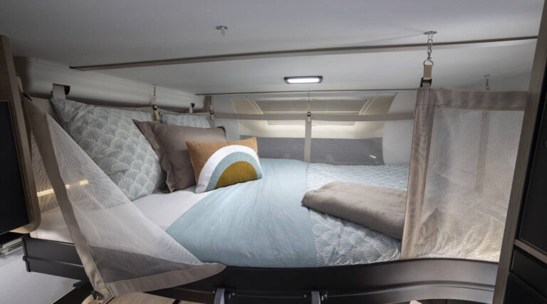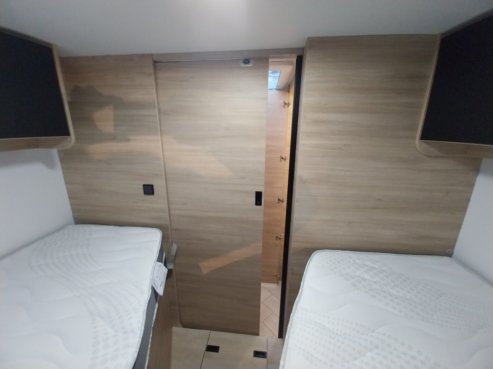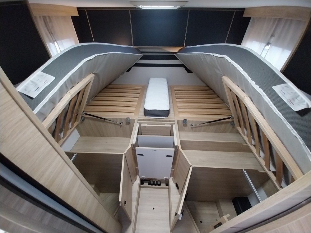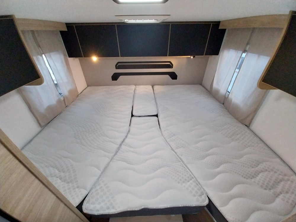 W tylnej części 2 oddzielne łóżka wzdłużne z możliwością połączenia w łoże małżeńskie (wym. 90 x 188 cm / 90 x 199 cm)