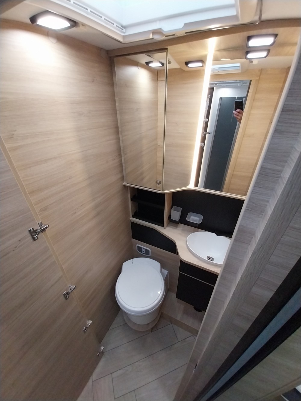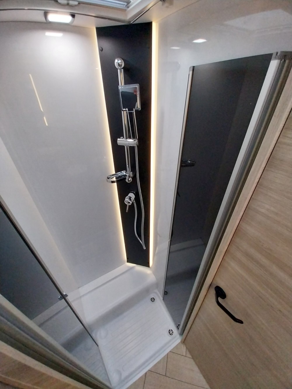 Kamper posiada wydzielony pełnowymiarowy prysznic oraz dużą, oddzielną łazienkę z toaletą.