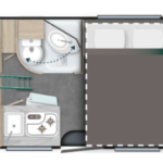 – Łazienka z przesuwną ścianką